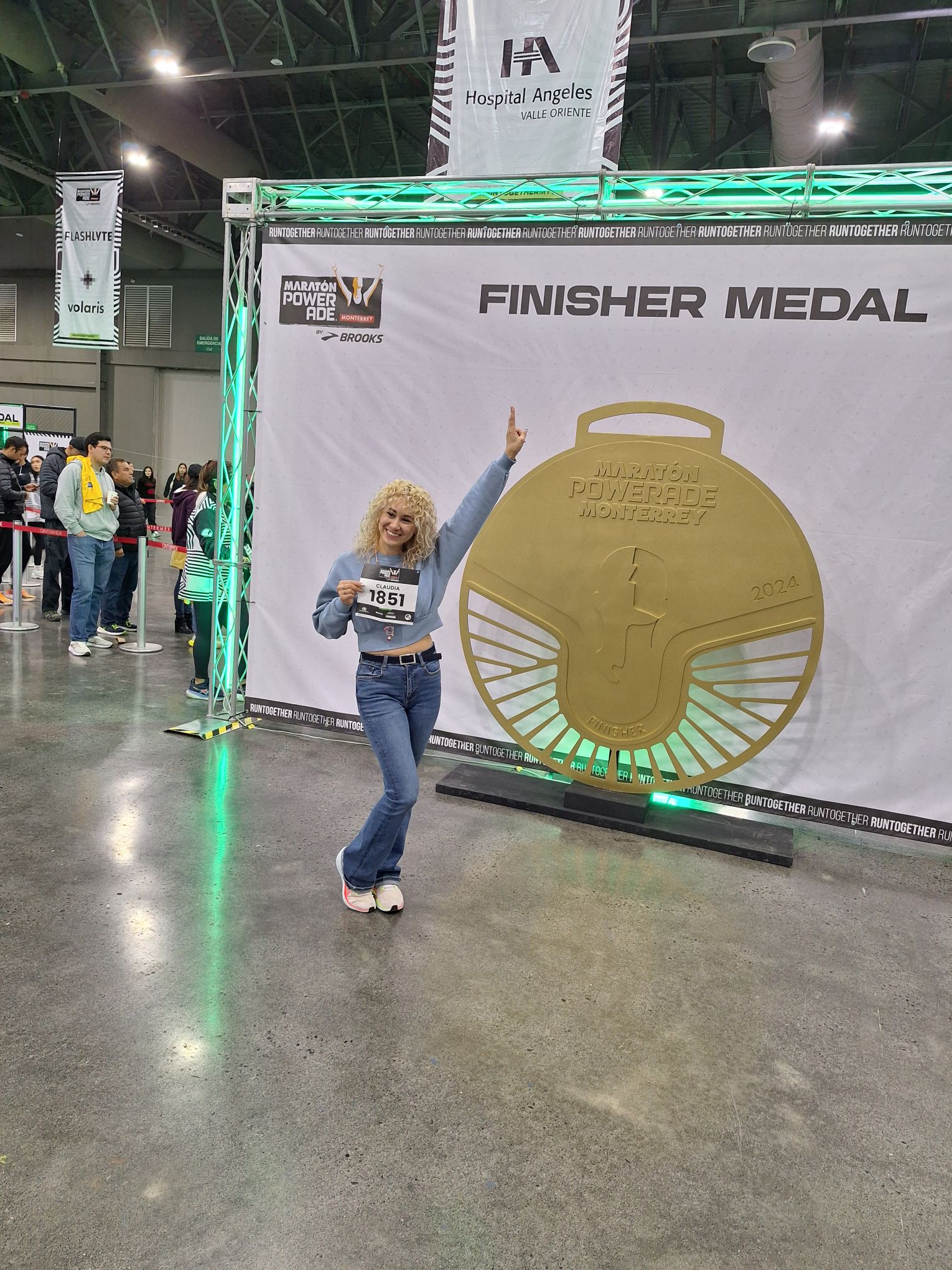 La emoción y la satisfacción se reflejan en tu rostro al llegar a la meta, nuevamente felicidades!