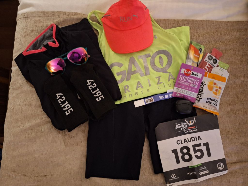 La carga de carbohidratos la había estado haciendo con días anticipados, de igual manera comí y cené como es de costumbre, pollo y carbohidratos. Preparé todo mi outfit, geles, audífonos cargados, lentes, pastillas de sal, reloj etc.
