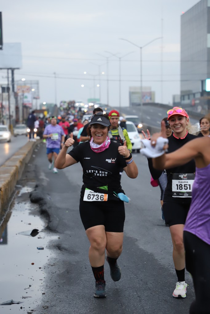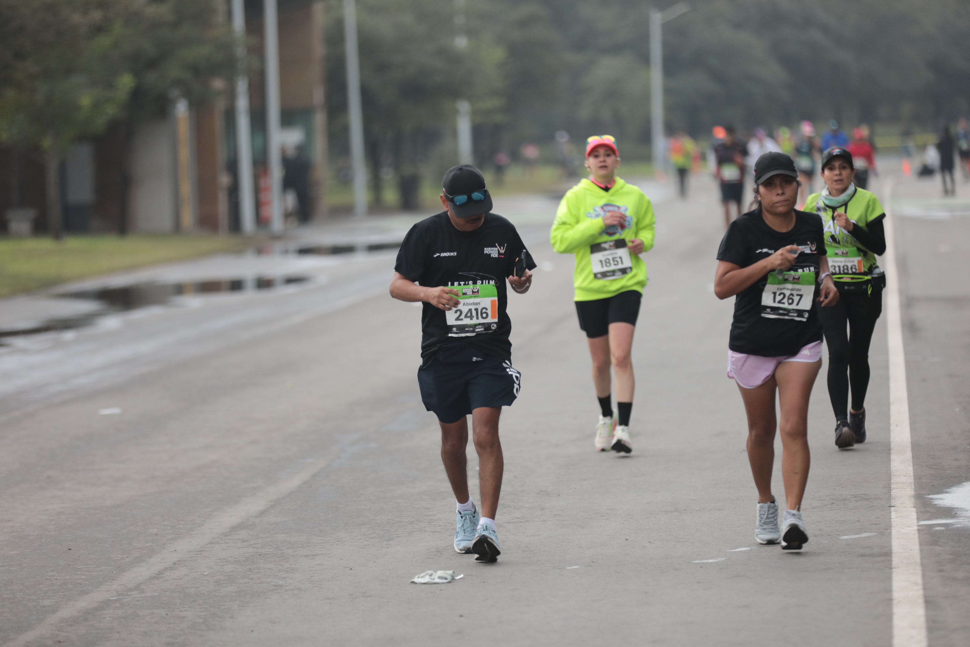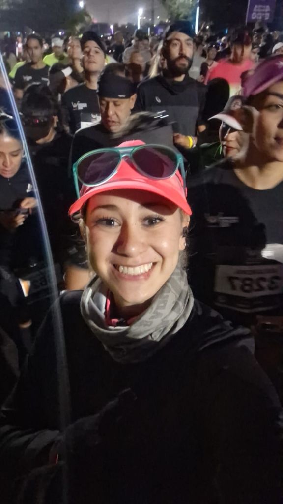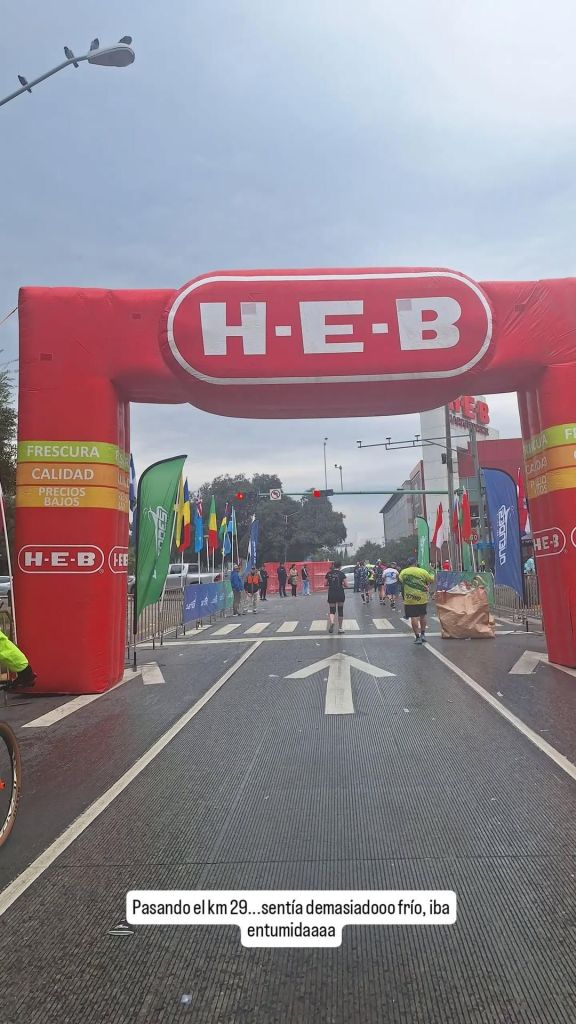 A esa altura mi cuerpo estaba rindiéndose, aún y cuando estaba corriendo, mi cuerpo no sentía calor, al contrario, cada que avanzaba más, mis piernas se entumían y mis manos se ponían heladísimas, se empezaban a presentar los demonios de uno mismo, «Salte» «Ya para» «No termines» «No puedes», etc y yo convencida apagando esas voces y luchando contra eso, diciendo «Claro que puedo, voy a llegar a la meta, a eso vine, por mi medalla»