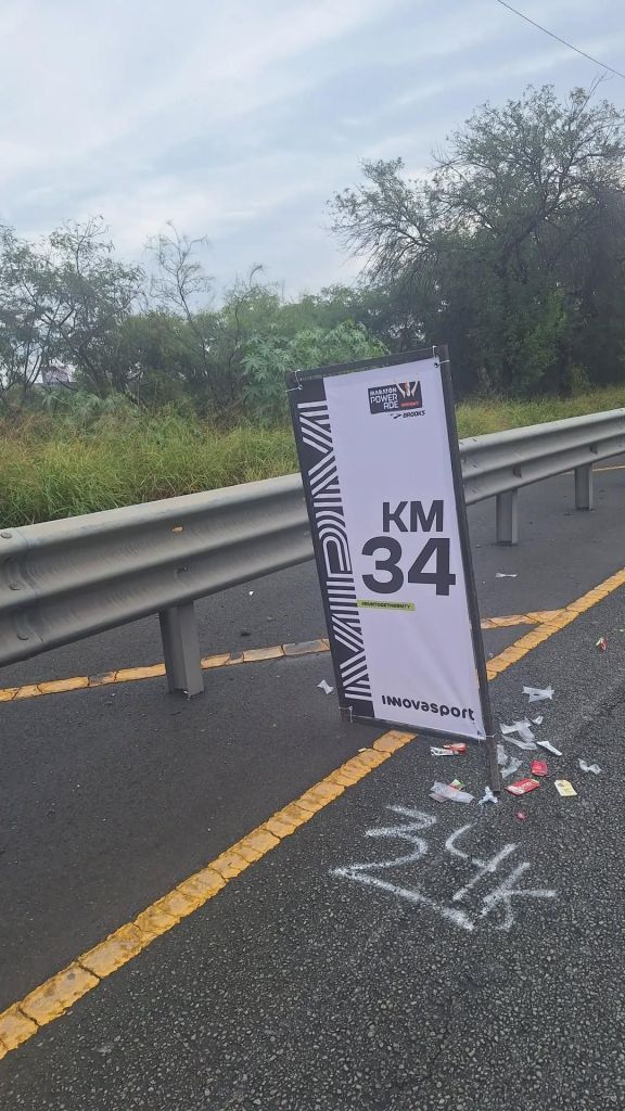 El año pasado traía puesta la chamarrita y se la dejé a mi papá que estaba en el km 37, pero este año, no sabía si aguantaría con la chamarrita tantos kms así que por eso consideraba aventar las prendas al principio, porque repito, según yo el clima se pondría mejor y mi cuerpo estaría caliente pasados unos kms.