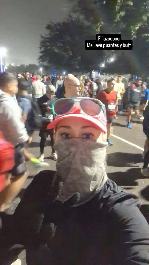 Para un corredor es muy importante el «outfit» que llevarás, lo preparas por mucho tiempo, en mi caso, había pedido un short especial con muchas bolsas para evitar llevarme una cangurera, que me funciona muy bien así, para ir más ligera y más libre, yo no tenía contemplado un plan b con leggins, porque en mi mente solo sería el comienzo de la carrera que sentiría el frío y luego se pasaría. Contemplaba una chamarrita ligera, unos guantes y buff que fácilmente pudiera «tirar», porque agarras calorcito y esas prendas te van estorbando de alguna manera.