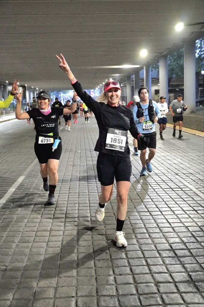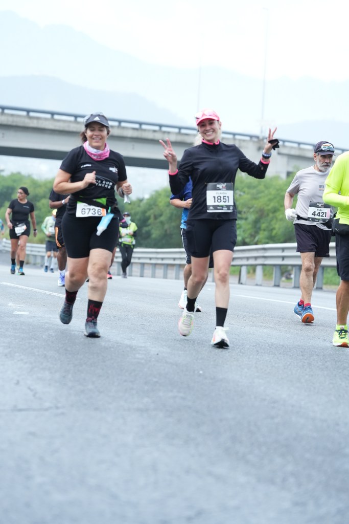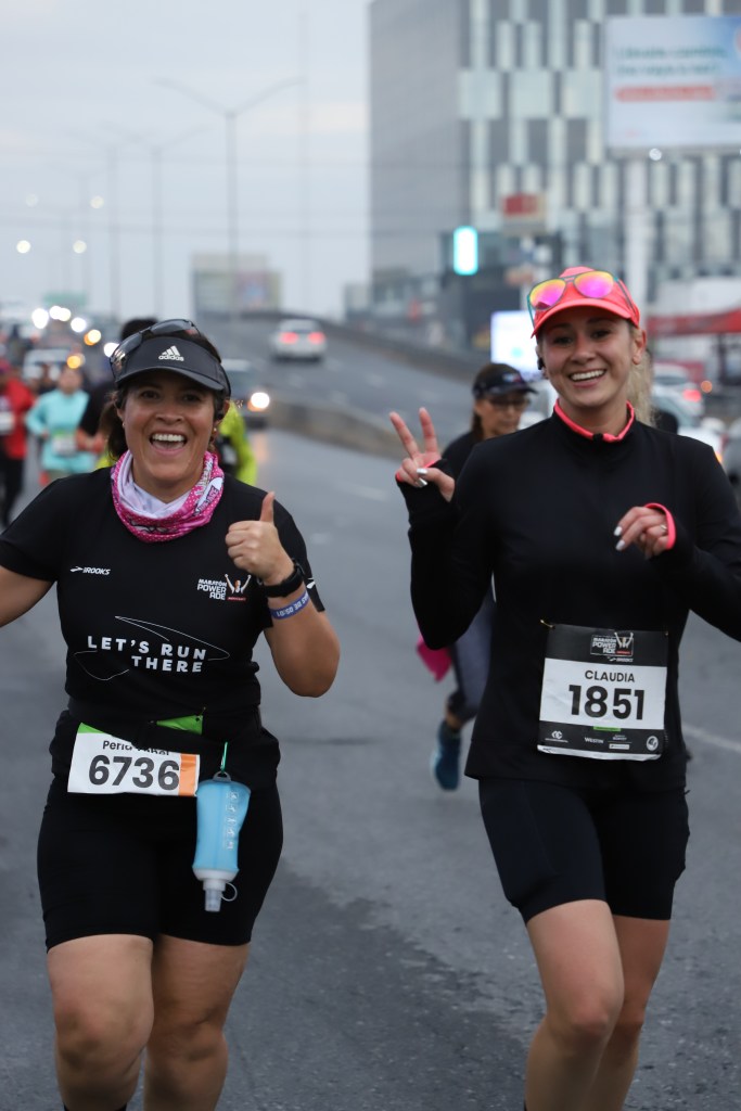 En el camino me topaba con corredores adultos mayores que llevaban más de 150 maratones y pensaba «woww algún día seré como ellos, y disfrutando cada km, contentos! » O al corredor que iba celebrando 100 maratones y su club iba corriendo cargando una lona gigante con su foto y celebrando, o al que iba con andador, al que iba en ritmo de caminata, o los corredores con alguna discapacidad y aun así van fuertes y perseverantes corriendo el maratón completo, y ahí es cuando piensas: «Si ellos pueden yo también» y le echas todas las ganas para seguir avanzando.